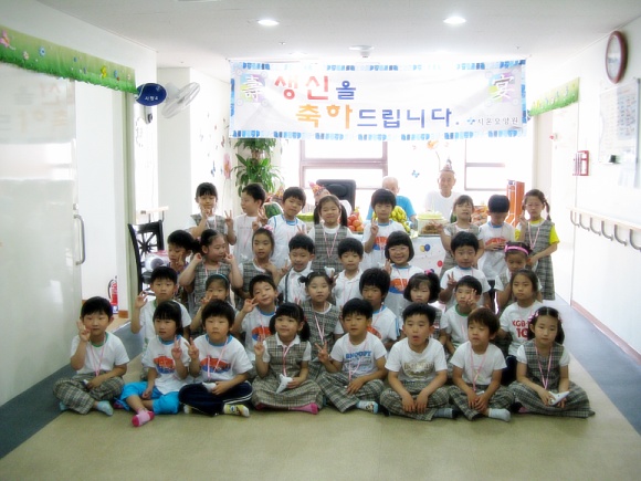 자매결연 원화유치원과 함께 어르신 생신 잔치를 하였습니다.