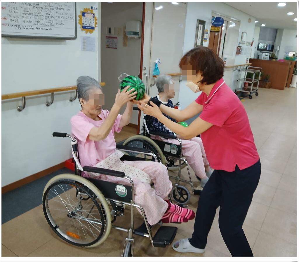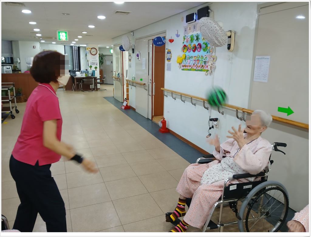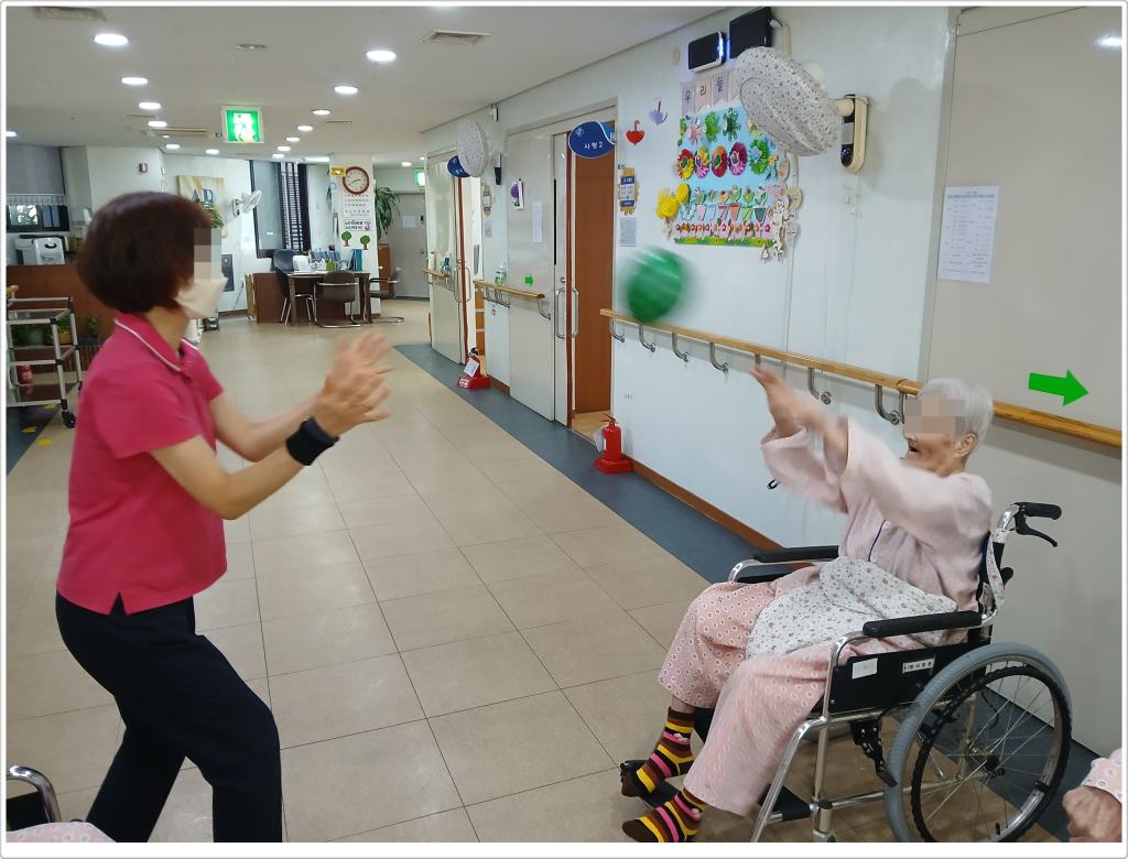 공던지기 신체활동을 통해 뇌를 자극하고 근육의 둔화를 지연시키고, 공을 잡고 던지는 활동을 통해 신체의 잔존기능을 유지하고 감각을 자극할 수 있습니다.