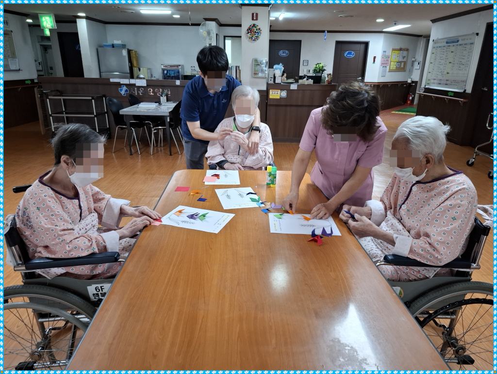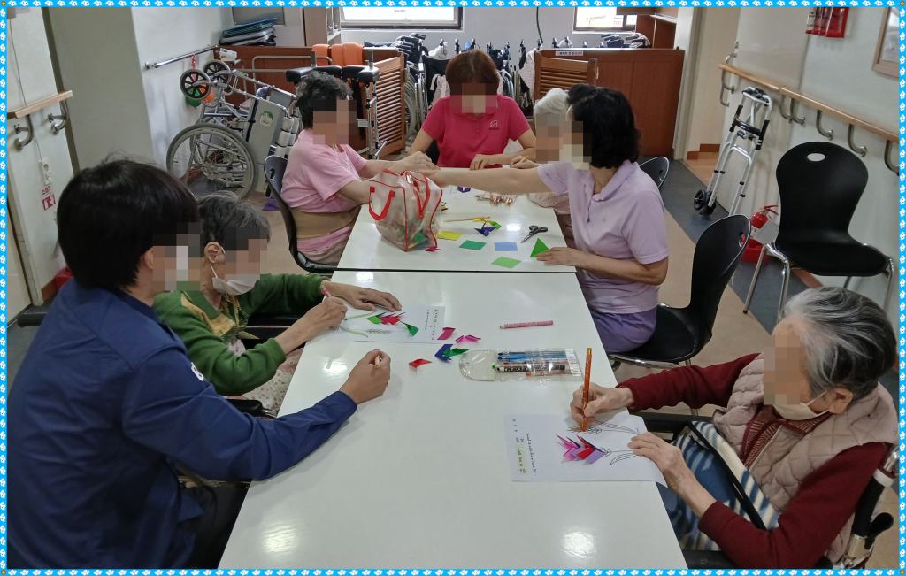 순서에 맞게 색종이를 접는 활동을 통해 인지기능의 퇴행을 예방하고, 손을 사용함으로써 소 근육의 둔화를 지연시킬 수 있습니다.