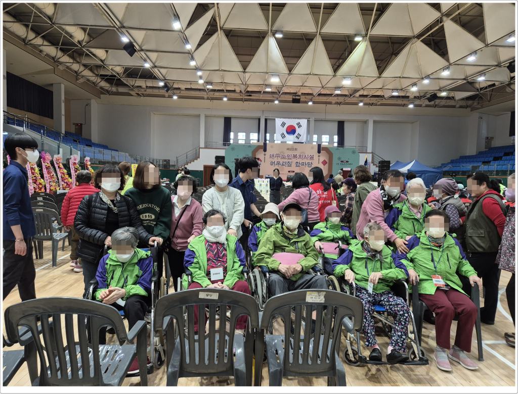 ▣ 제22회 대구노인복지시설 어우러짐 한마당 ▣ - 시민체육관에서 제22회 대구노인복지시설 어우러짐 한마당이 개최되었습니다. 어르신들에게 문화예술을 즐길 수 있는 기회 제공, 시설간의 친목 도모를 위한 화합의 장이 마련되었습니다. 대구노인복지협회의 모범이 되는 직원분들의 시상이 있었으며 어르신 장수상 시상이 있었습니다. 신나고 재미있는 공연을 관람하시며 즐거운 시간을 보내셨습니다. 하루종일 시설에서 생활하시는 어르신들이 이번 행사를 통해 활기를 되찾고 건강한 삶을 누리셨으면 합니다.