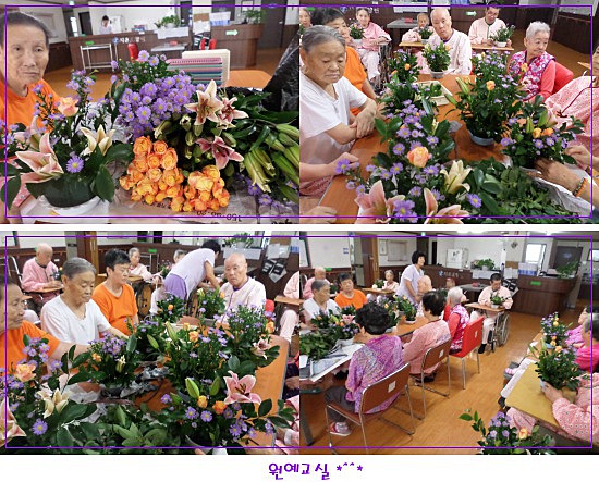 백합을 어르신들께서 꽃꽂이를 하시면서 기뻐하셨습니다.